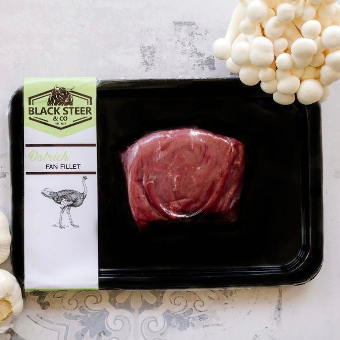 Premium Ostrich Fan Fillet is a unique, high-quality cut prized for its exceptional tenderness, fine grain, and naturally rich flavor.